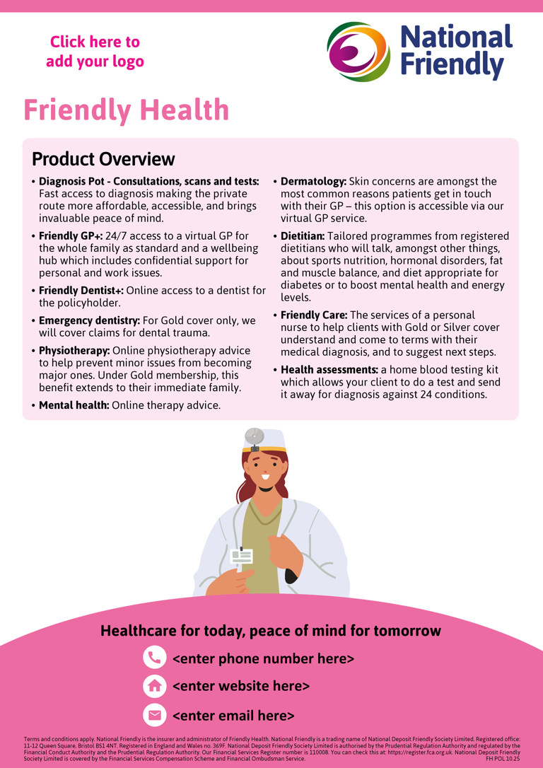Friendly Health A3 USPs Poster (Add Your Logo)