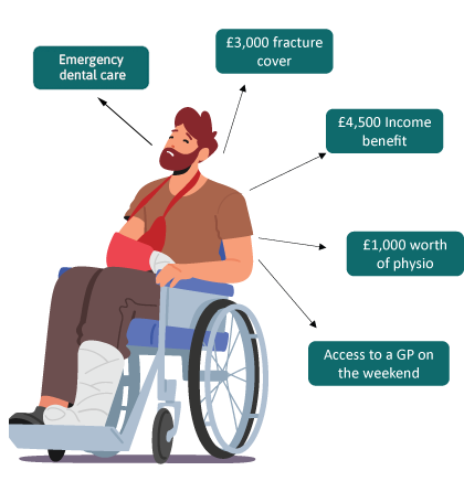 • Fracture cover: a lump sum benefit for fractures of bones up to £3,000.